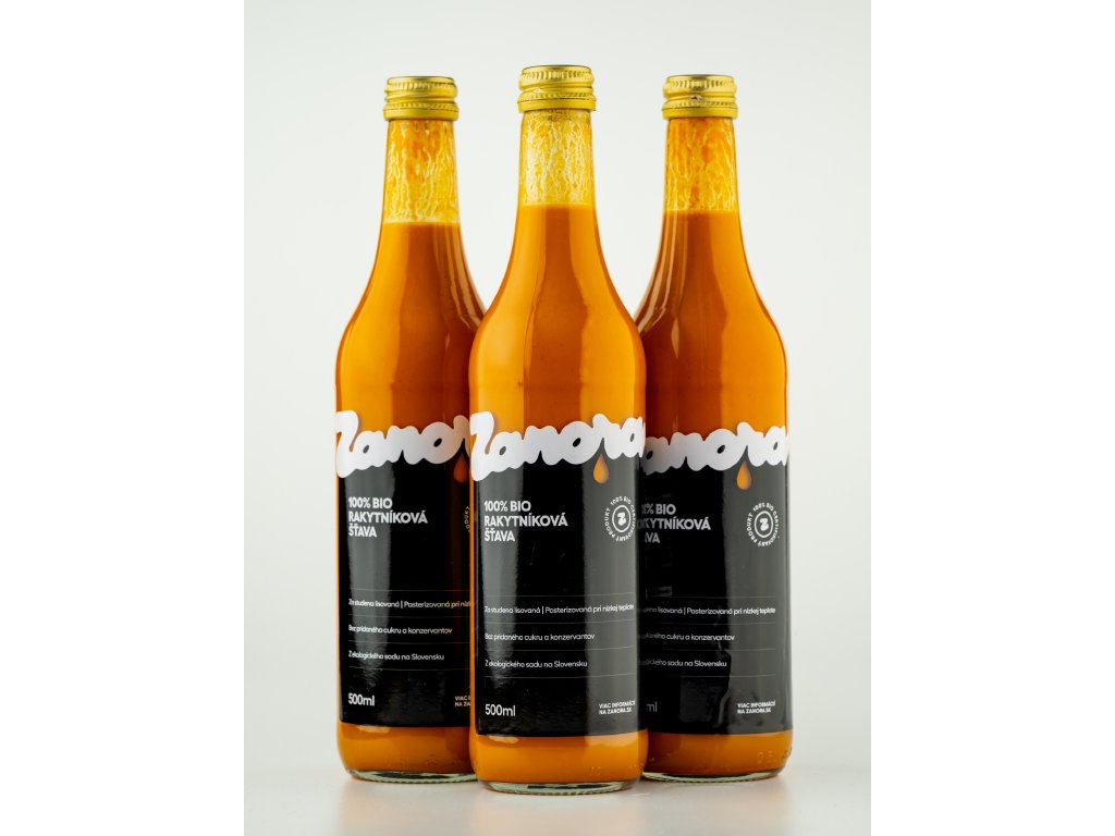 Naša 100 % organická rakytníková šťava je lisovaná za studena z ručne zbieraných plodov pochádzajúcich z ekologického poľnohospodárstva na Slovensku.